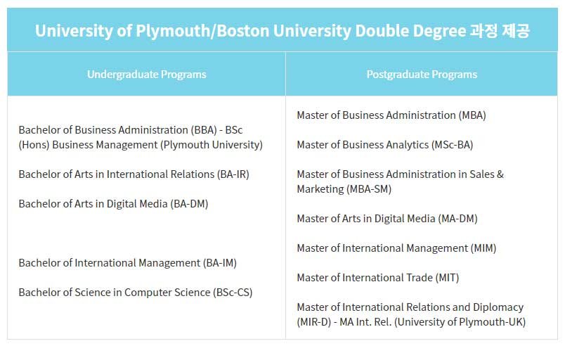 University of Plymouth/Boston University Double Degree 과정 제공