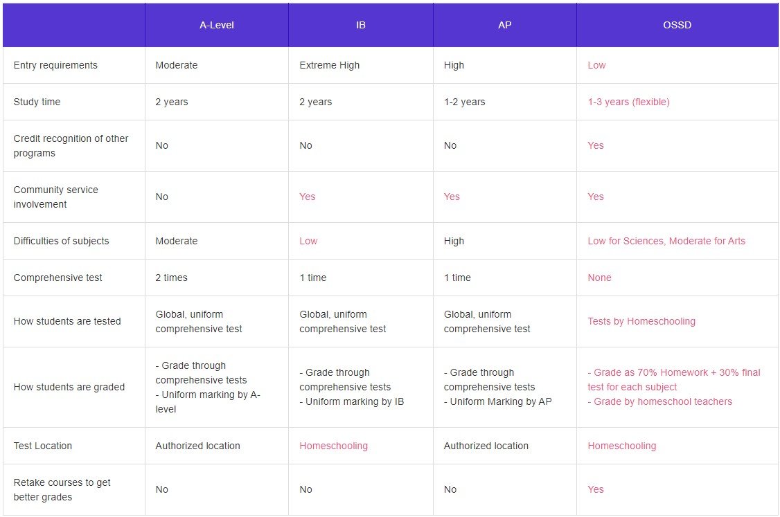 Worldwide Reputation in AdmissionsIn comparison to other high school diplomas or international secondary diplomas (IB, A-level, AP), it is easier to comply with OSSD's admission requirements . It is recognized by top universities. *See the list of universities that accept OSSD.